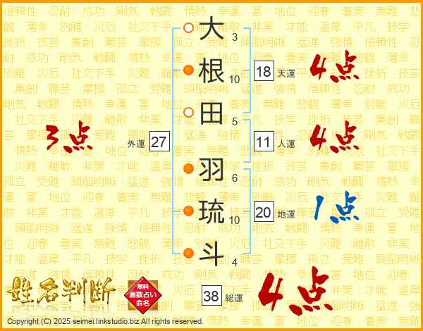 大根田羽琉斗さんの総運は38画の4点!