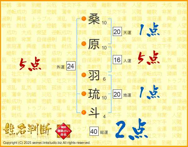 桑(10画)原(10画) 羽(6画)琉(10画)斗(4画)