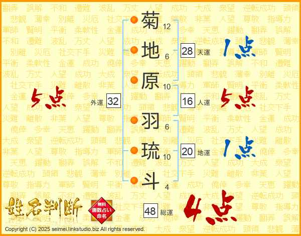 菊地原羽琉斗さんの外運は32画の5点!