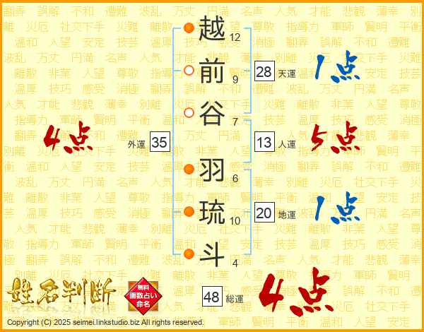 越前谷羽琉斗さんの総運は48画の4点!