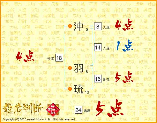 沖羽琉さんの外運は18画の4点!
