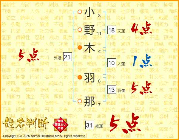 小(3画)野(11画)木(4画) 羽(6画)那(7画)
