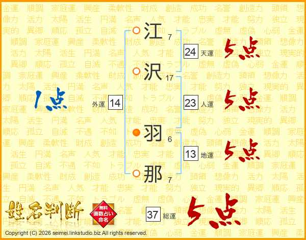 江沢羽那さんの総運は37画の5点!