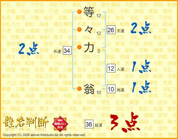 等々力翁さんの天運は26画の2点!
