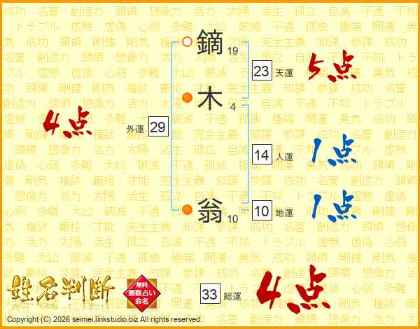 鏑木翁さんの総運は33画の4点!