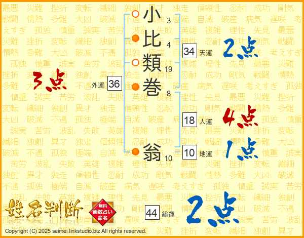 小(3画)比(4画)類(19画)巻(8画) 翁(10画)