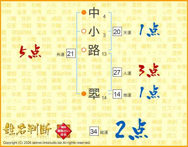中小路翆さんの外運は21画の5点!