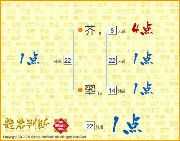 芥翆さんの総運は22画の1点!