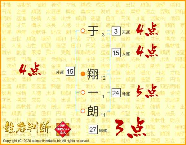 于翔一朗さんの外運は15画の4点!