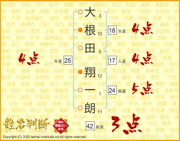 大根田翔一朗さんの総運は42画の3点!