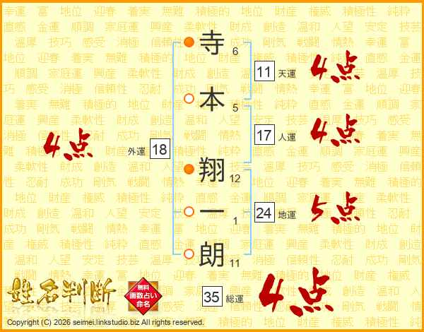 寺本翔一朗さんの天運は11画の4点!