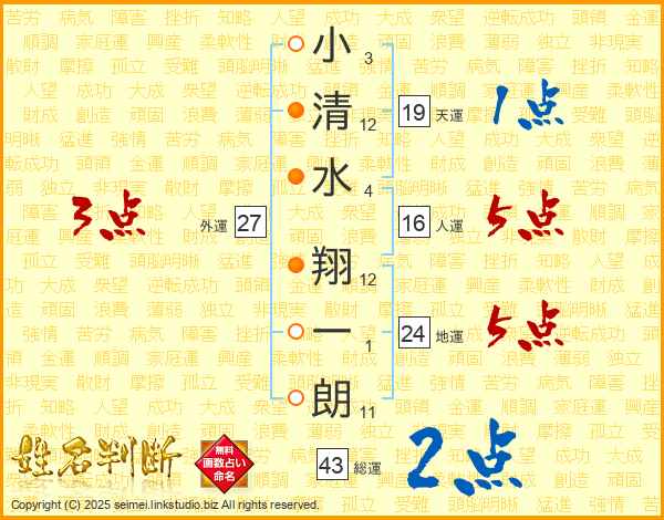 小清水翔一朗さんの総運は43画の2点!