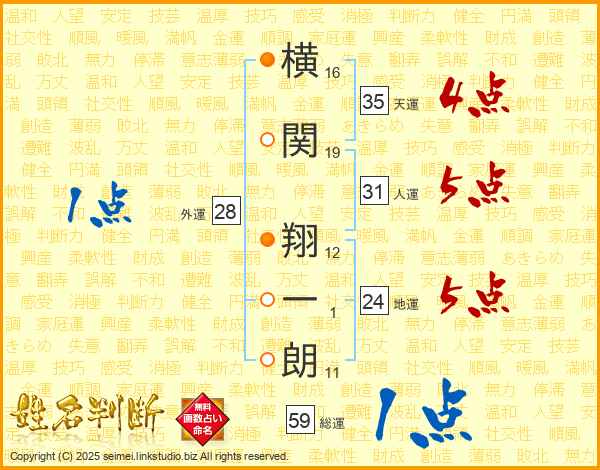 横関翔一朗さんの総運は59画の1点!