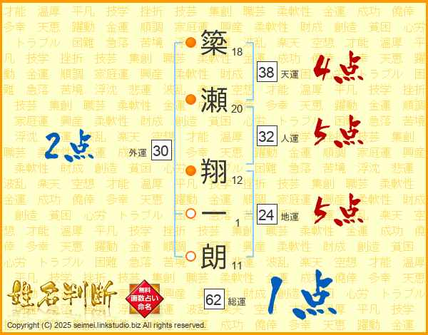 簗瀬翔一朗さんの総運は62画の1点!