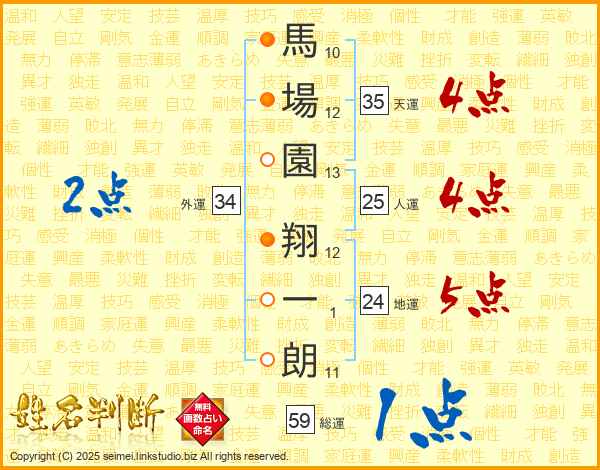 馬場園翔一朗さんの人運は25画の4点!