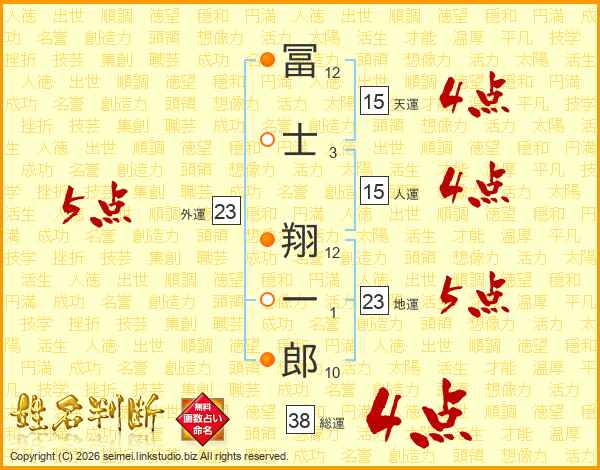 冨士翔一郎さんの総運は38画の4点!