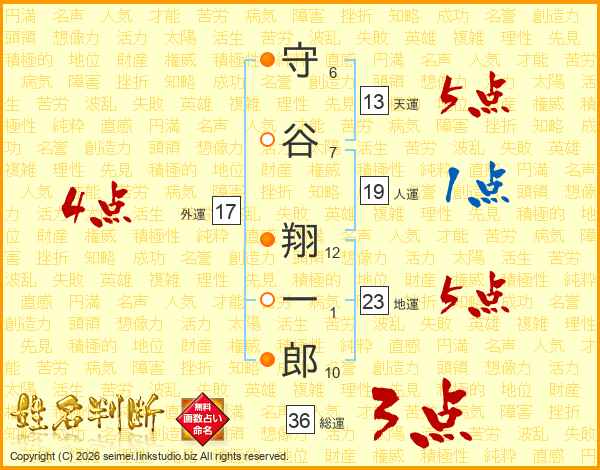 守谷翔一郎さんの総運は36画の3点!