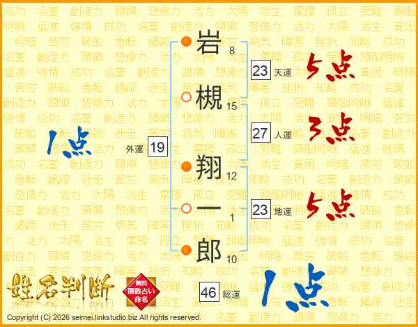岩槻翔一郎さんの総運は46画の1点!