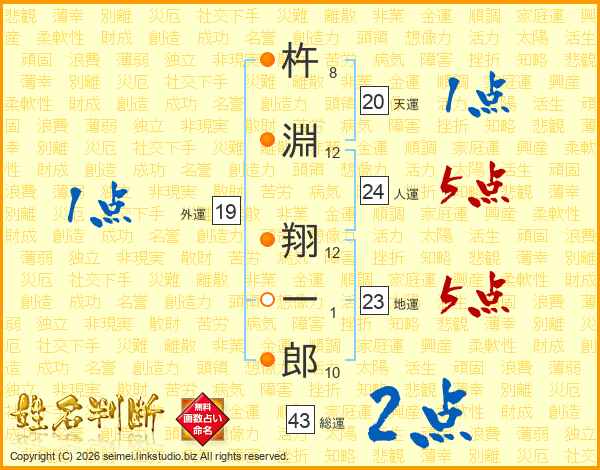 杵淵翔一郎さんの総運は43画の2点!