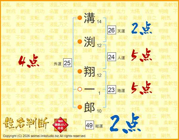 溝(14画)渕(12画) 翔(12画)一(1画)郎(10画)