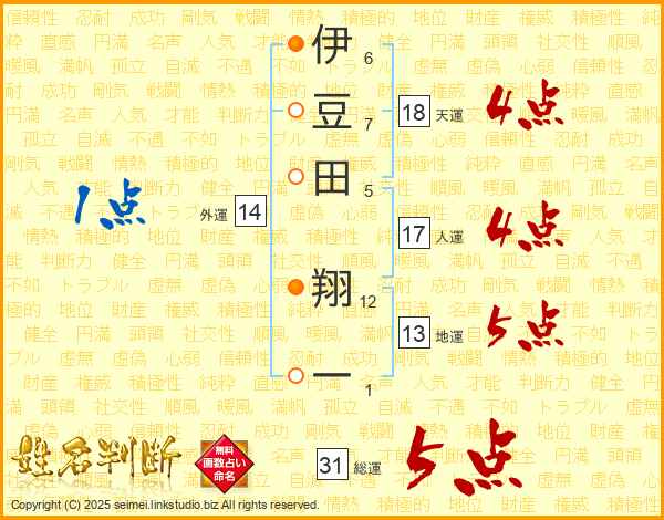 伊豆田翔一さんの総運は31画の5点!