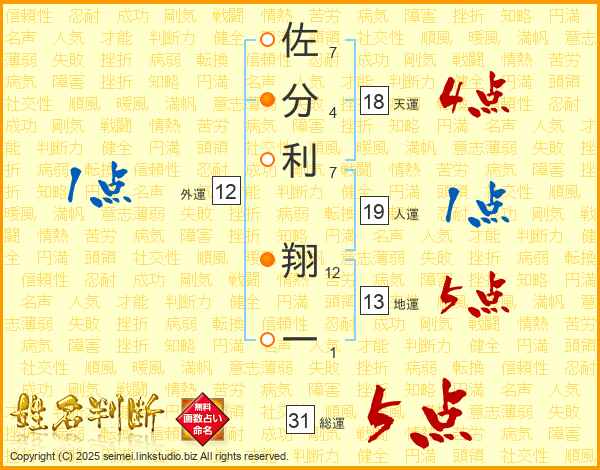 佐分利翔一さんの総運は31画の5点!