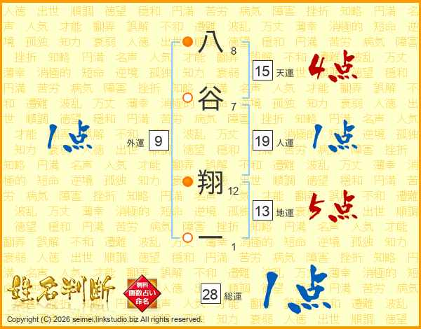 八谷翔一さんの総運は28画の1点!