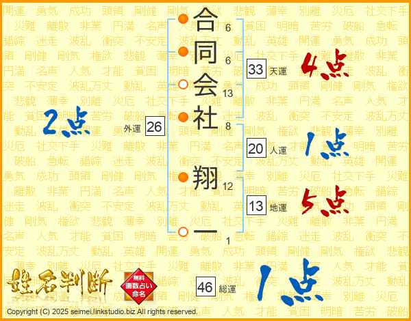 合(6画)同(6画)会(13画)社(8画) 翔(12画)一(1画)