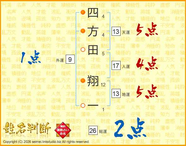 四方田翔一さんの天運は13画の5点!
