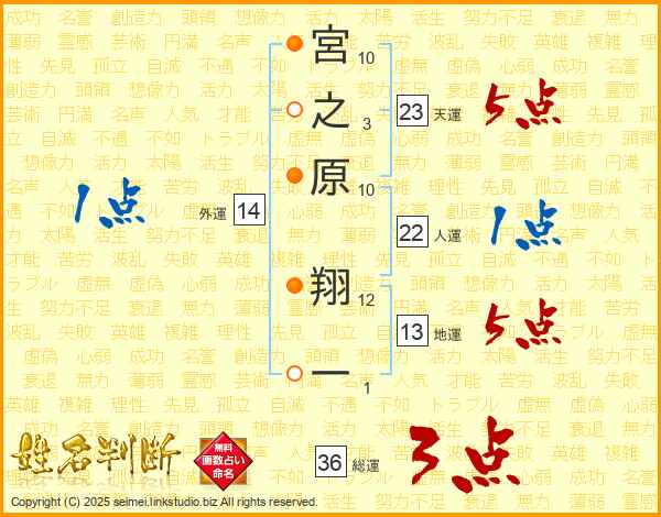 宮之原翔一さんの天運は23画の5点!