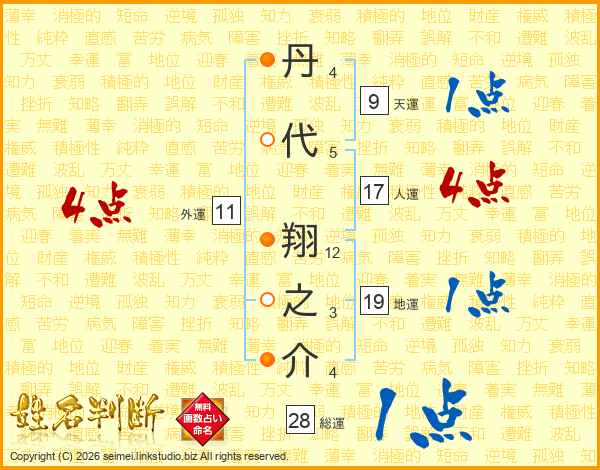 丹代翔之介さんの人運は17画の4点!