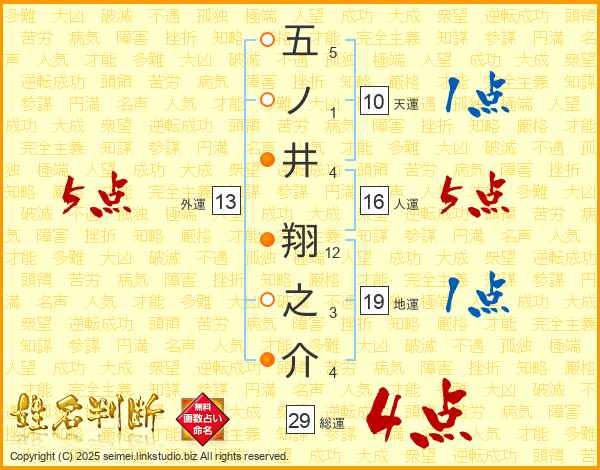 五(5画)ノ(1画)井(4画) 翔(12画)之(3画)介(4画)
