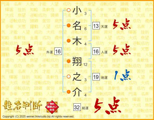 小名木翔之介さんの天運は13画の5点!