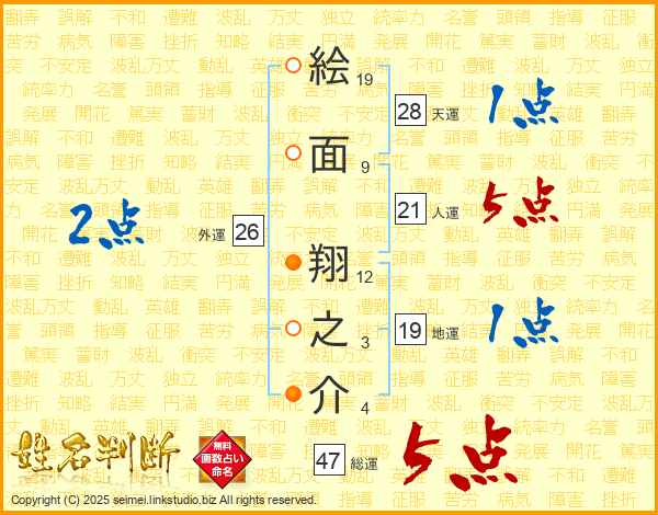 絵面翔之介さんの総運は47画の5点!