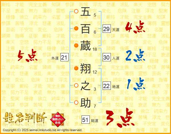 五(5画)百(6画)蔵(18画) 翔(12画)之(3画)助(7画)