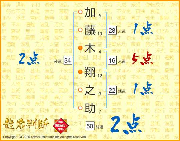 加藤木翔之助さんの総運は50画の2点!