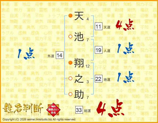 天池翔之助さんの総運は33画の4点!