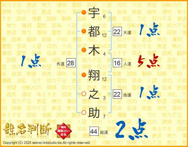 宇都木翔之助さんの総運は44画の2点!