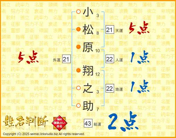 小(3画)松(8画)原(10画) 翔(12画)之(3画)助(7画)
