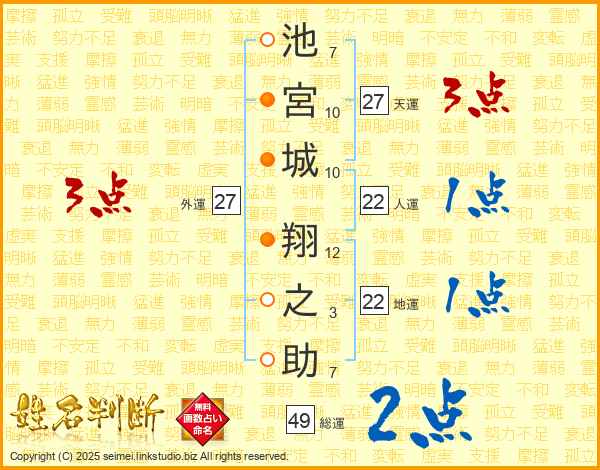 池宮城翔之助さんの総運は49画の2点!