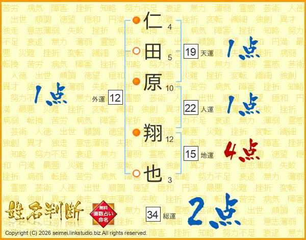 仁田原翔也さんの総運は34画の2点!
