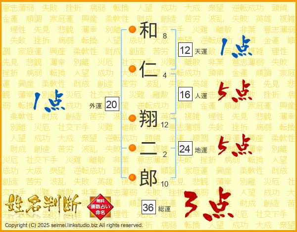 和(8画)仁(4画) 翔(12画)二(2画)郎(10画)
