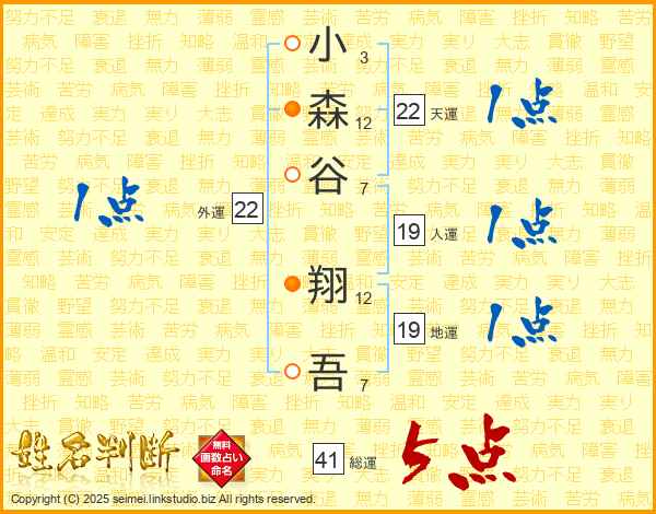 小(3画)森(12画)谷(7画) 翔(12画)吾(7画)