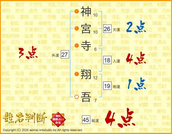神宮寺翔吾さんの総運は45画の4点!