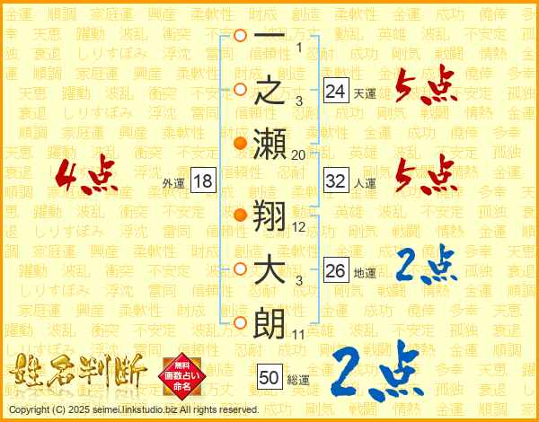 一之瀬翔大朗さんの地運は26画の2点!