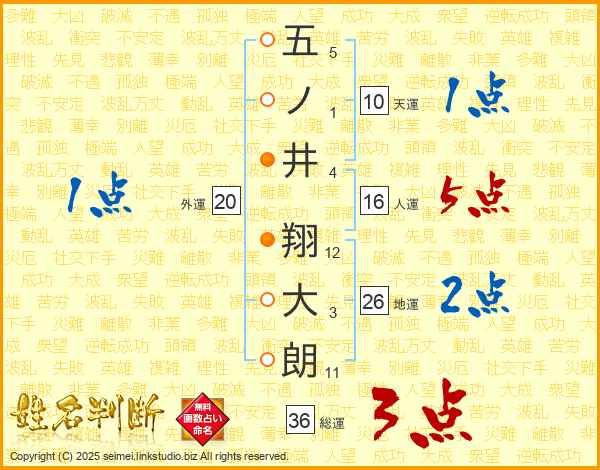 五ノ井翔大朗さんの総運は36画の3点!