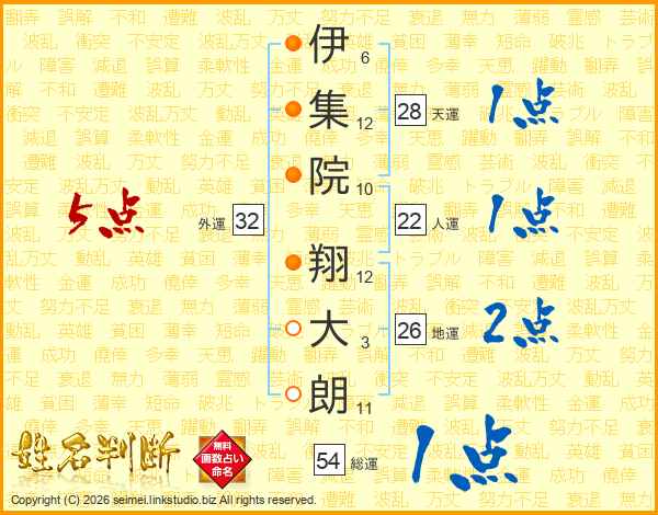 伊集院翔大朗さんの地運は26画の2点!