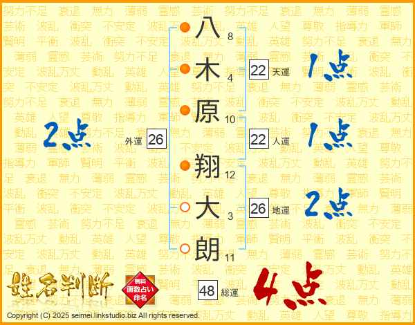 八木原翔大朗さんの総運は48画の4点!