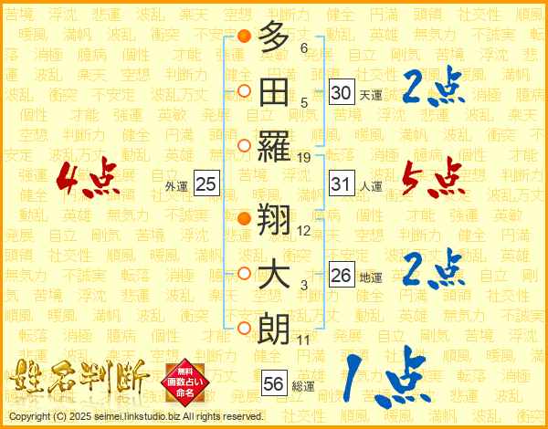 多田羅翔大朗さんの総運は56画の1点!