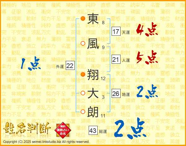 東風翔大朗さんの地運は26画の2点!